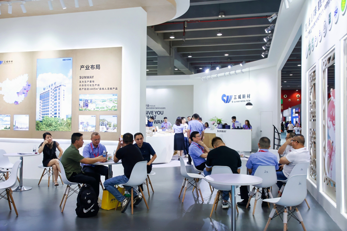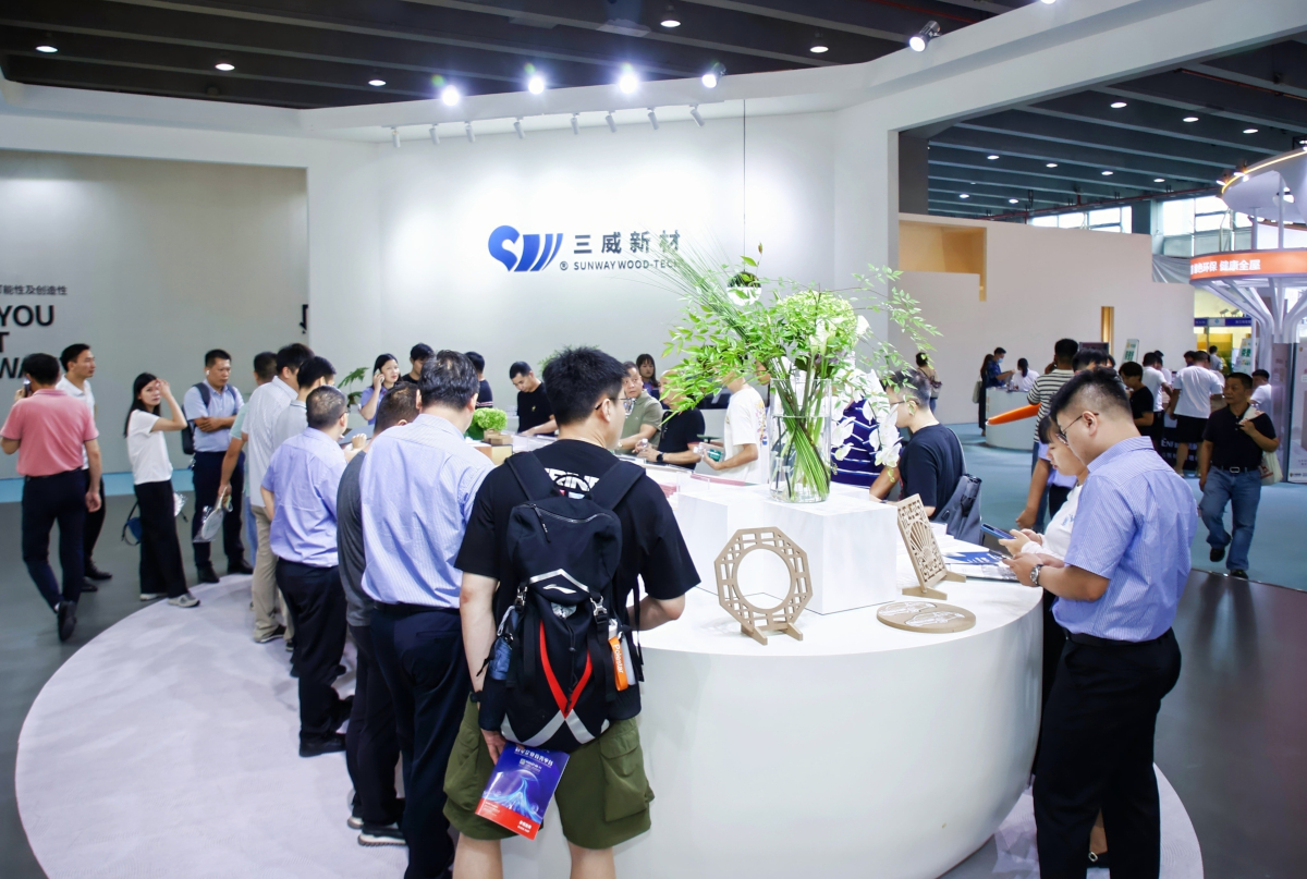 展會(huì)期間,三威展位人氣爆棚,來(lái)自全球的行業(yè)專家、企業(yè)代表及專業(yè)觀眾絡(luò)繹不絕。洽談區(qū)座無(wú)虛席,眾多客商對(duì)三威的定制化板材解決方案表現(xiàn)出濃厚興趣,現(xiàn)場(chǎng)達(dá)成多項(xiàng)合作意向。中國(guó)林產(chǎn)工業(yè)協(xié)會(huì)專家在參觀后表示:“三威新材的產(chǎn)品創(chuàng)新與環(huán)保理念,為人造板行業(yè)的高質(zhì)量發(fā)展提供了新思路?!?/p>